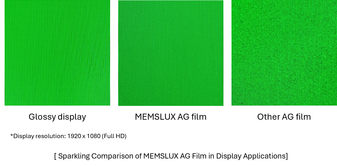 This technology has been applied to high-performance anti-glare (AG) films that offer excellent visibility and minimal sparkling effects.